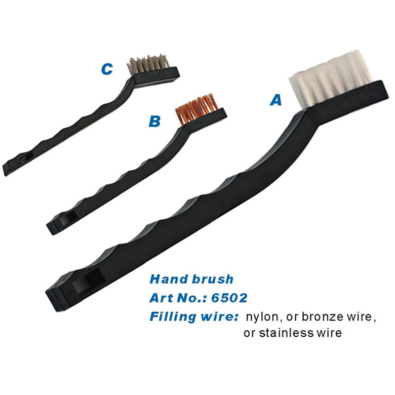 أداة تنظيف المسدس، فرشاة يدوية ذات شعيرات ثقيلة. على شكل فرشاة أسنان، مقبض بلاستيكي، أسلاك نحاسية وأسلاك نايلون للاختيار.