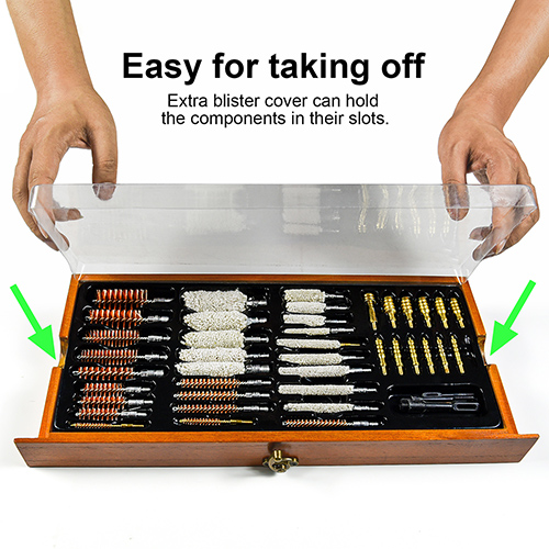 علبة خشبية فاخرة طقم تنظيف المسدس العالمي مع مسند المسدس