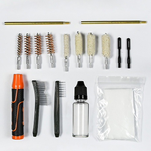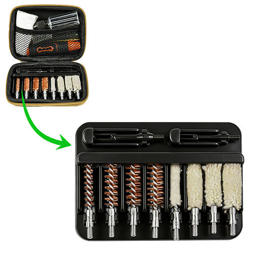 تشتمل مجموعة أدوات تنظيف المسدس على 4 أحجام (.22، 9 مم، .40، .45 كالوري). قماش OX مطلي حالة PVC مع الرمز البريدي. فرش نحاسية ومماسح قطنية، 2 قضيب. الرمال والأسود اللون للاختيارات.