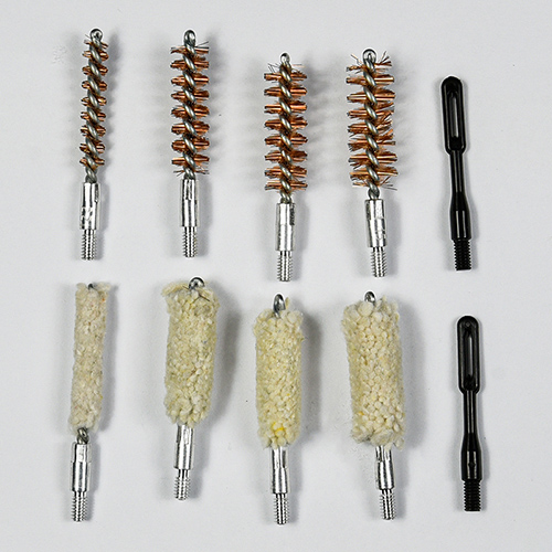 تشتمل مجموعة أدوات تنظيف المسدس على 4 أحجام (.22، 9 مم، .40، .45 كالوري). قماش OX مطلي