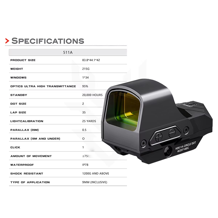 HD511A البصر البصري المدمج للصيد ريد دوت البصر متاح للشراء بالجملة بكميات كبيرة