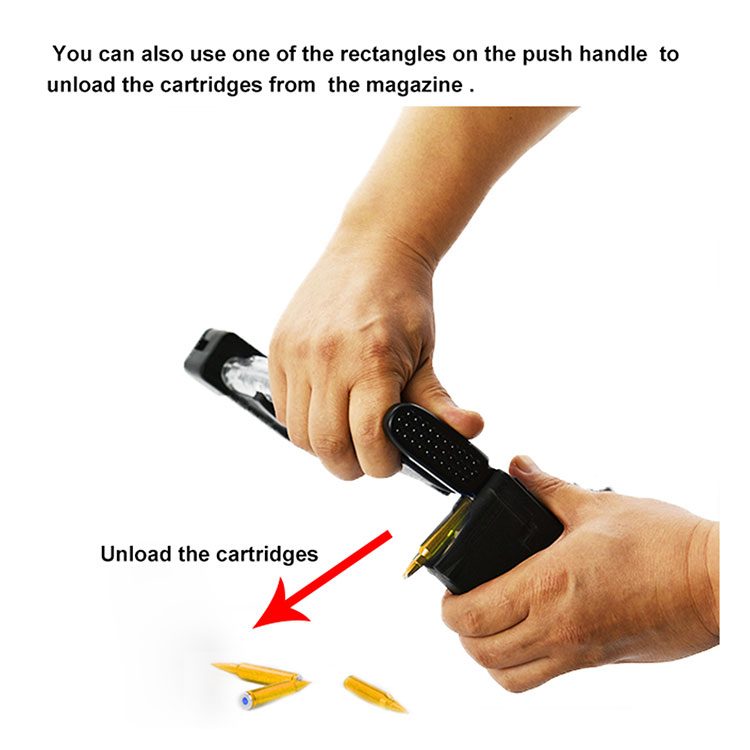 ● تستخدم لتحميل خراطيش مقاس 5.56 × 45 مم في مجلة AR بسعة أكبر 10/20/30 أو أكثر.