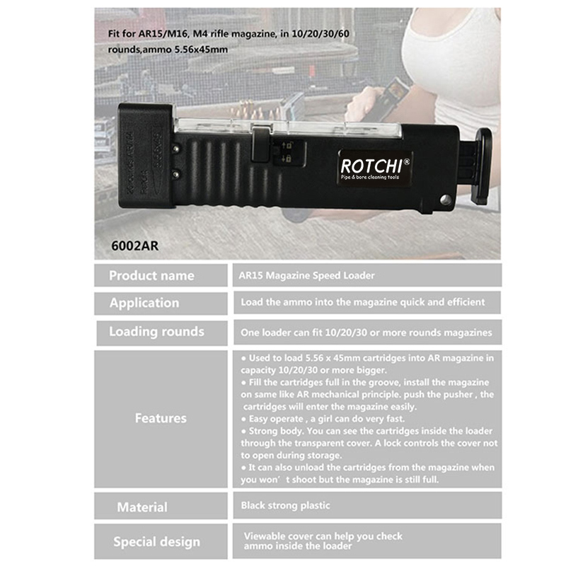 محمل سرعة المجلة لـ AR15 ● يستخدم لتحميل خراطيش مقاس 5.56 × 45 مم في مجلة AR بسعة أكبر 10/20/30 أو أكثر. ● املأ الخراطيش بالكامل في الأخدود، ثم قم بتثبيت المجلة على نفس المبدأ الميكانيكي للواقع المعزز. ادفع الدافع، ستدخل الخراطيش إلى المجلة بسهولة. ● تشغيل سهل، يمكن للفتاة القيام به بسرعة كبيرة. ● جسم قوي. يمكنك رؤية الخراطيش داخل اللودر من خلال الغطاء الشفاف. قفل يتحكم في عدم فتح الغطاء أثناء التخزين. ● يمكنه أيضًا تفريغ الخراطيش من المجلة عندما لا ترغب في التصوير ولكن المجلة لا تزال ممتلئة.