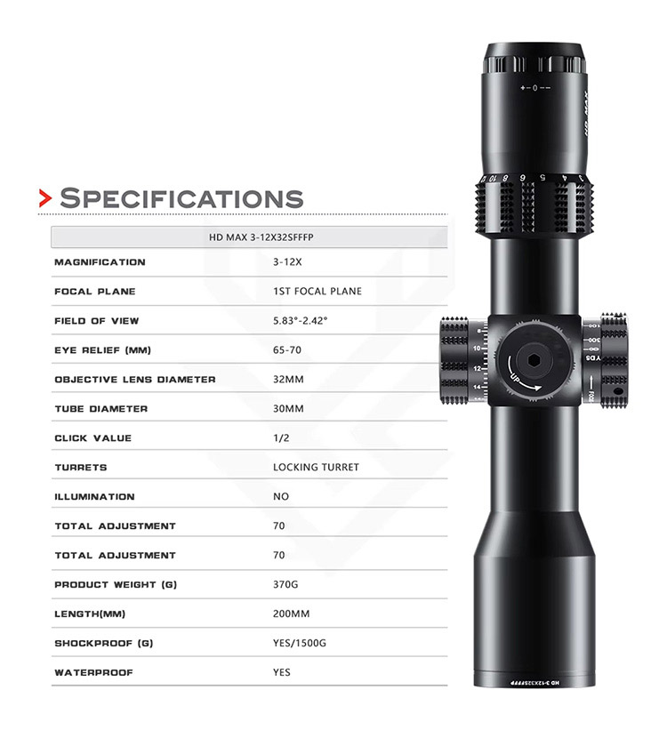 ماكس 3-12X32SF FFP HD عالية عدسة الصيد أحادي تلسكوب بالجملة