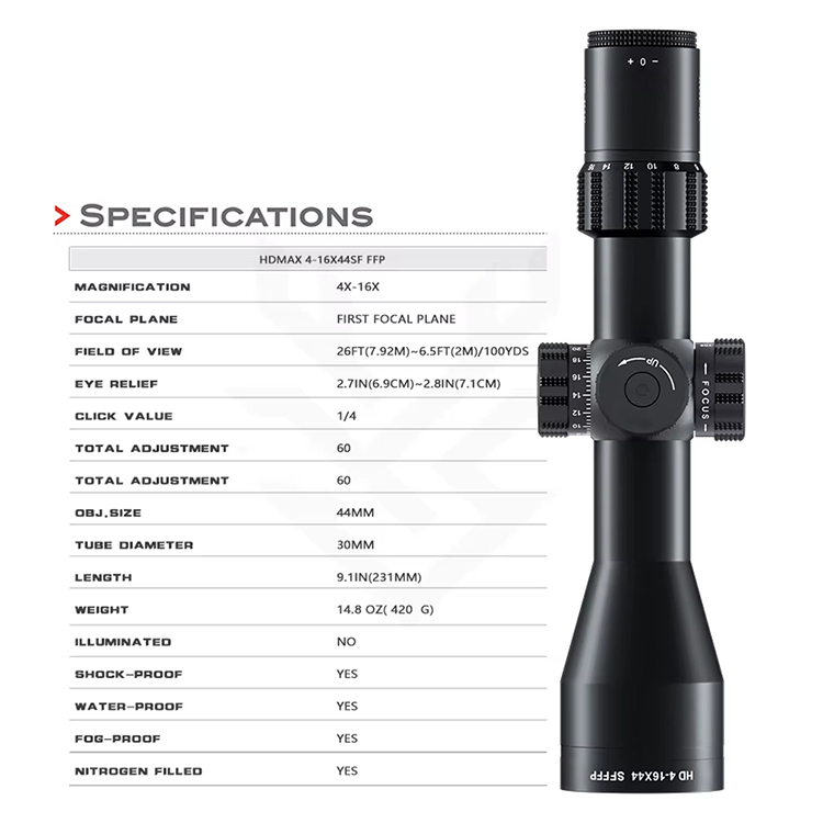 تلسكوب أحادي العين للصيد ذو عدسة عالية الوضوح MAX 4-16X44SF FFP