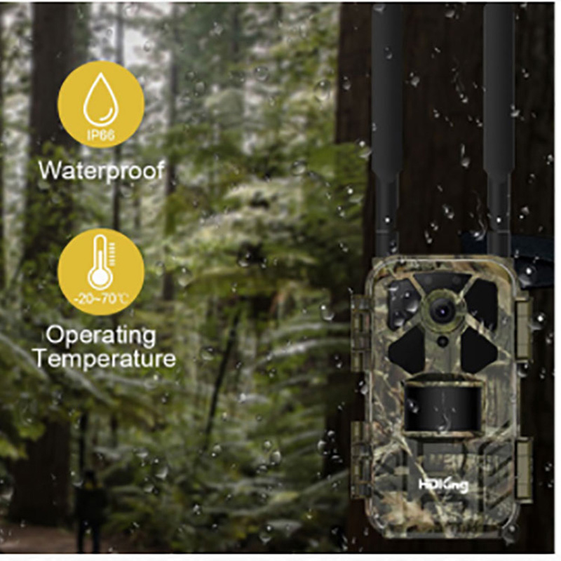 4G لاسلكي / تصميم هوائي مزدوج / مقاوم للماء IP65 / 5.0M بكسل مستشعر CMOS / 0.5S وقت التشغيل السريع / وقت الاستعداد الطويل / نطاق الرؤية الليلية الطويل / درجة حرارة التشغيل