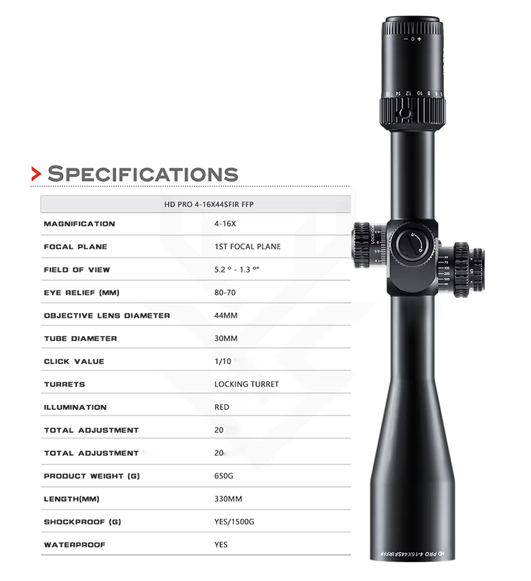 Optics HD PRO 4-16X44 SFIR FFP صيد عالي المقاومة للصدمات