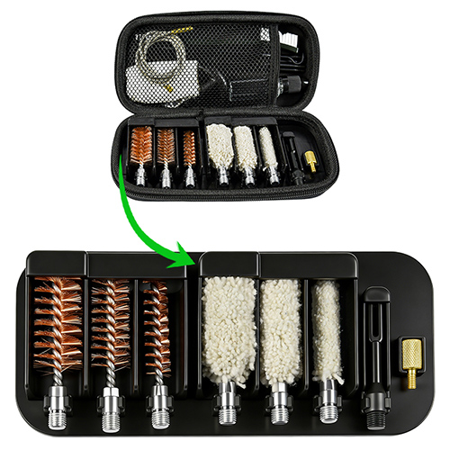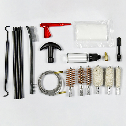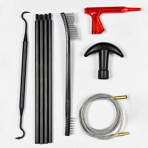 تتضمن مجموعة تنظيف البندقية 3 أحجام (12/16 جرام، 20 جرام، 410). فرش نحاسية و ممسحة قطنية 4 قضبان 1 كالب. الرمال واللون الأسود للاختيارات.